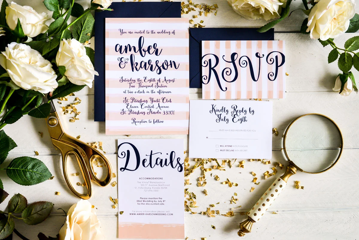Happy Monday everyone! I am super excited to share with you some of the new invitation suites that are up in the shop! For this collection of invites I dusted off some of the concepts I had lying around and gave them new life! As a designer I never delete any ideas, because you never know when you might have the perfect job for them. Case in point - our new invitation suites! Pictured are the Juliette & Amber suites. Any and all of our suites can be customized to fit your desired color and style. Be sure to browse through our Etsy shop to see the rest of the collection and contact Ivory House today to get your hands on one of these amazing invites!