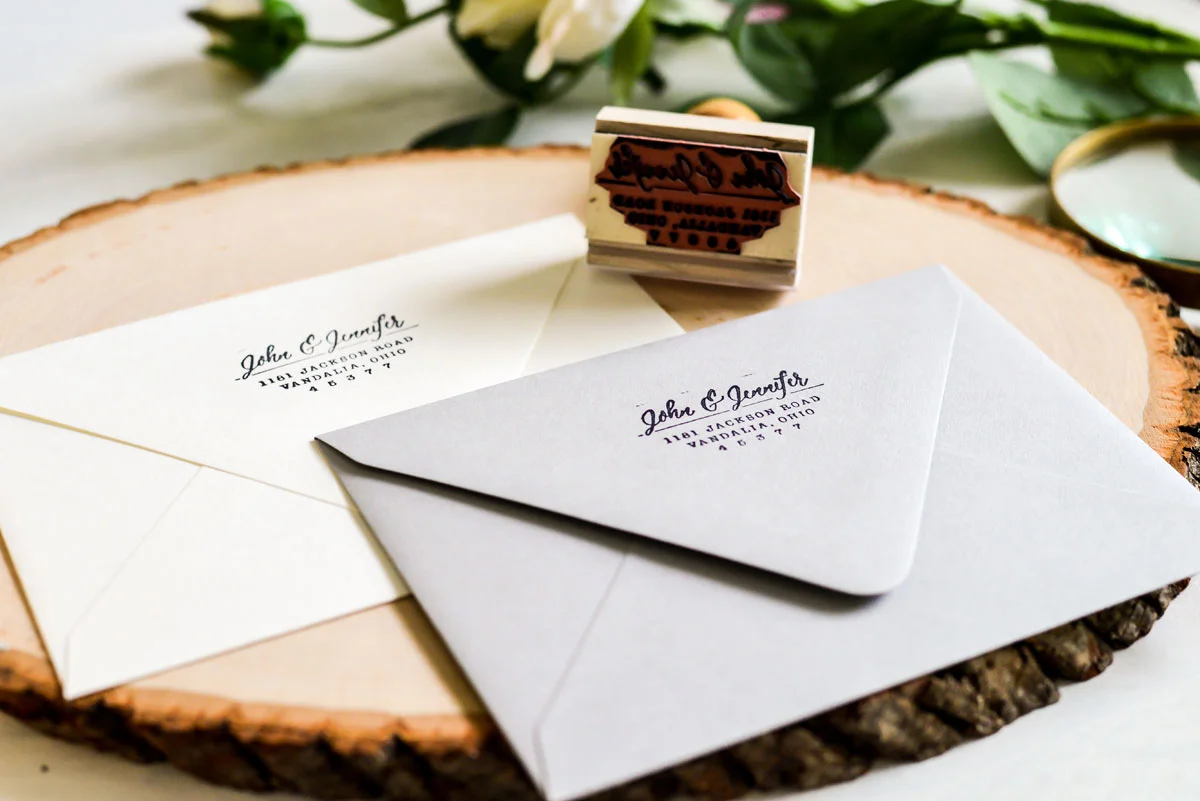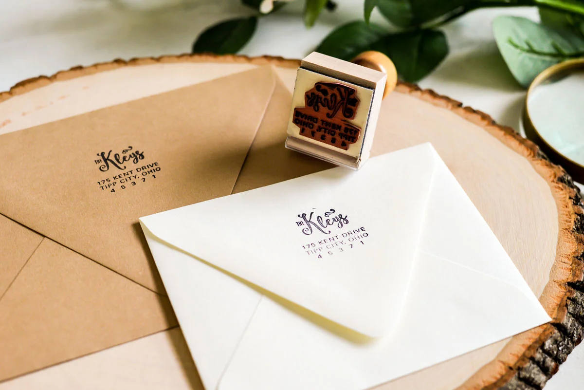 This week I have been feverishly adding new items to our shop and today I am happy to announce that custom address stamps are now ready for purchase. These custom stamps are perfect to have around to address your everyday stationery and are a great way to ease the pain of addressing hundreds of RSVP envelopes! Be sure to check out our three readymade options in the store, and as always if you don't see a style you like let us know so we can customize a stamp just for you!