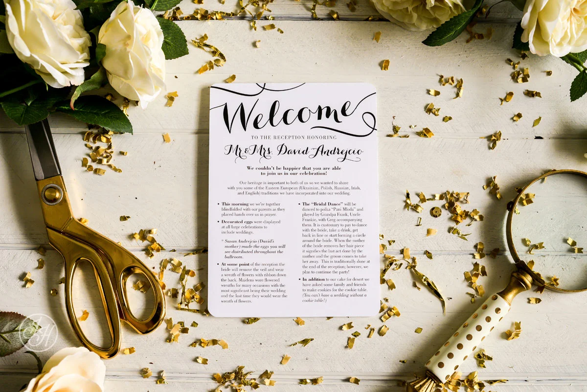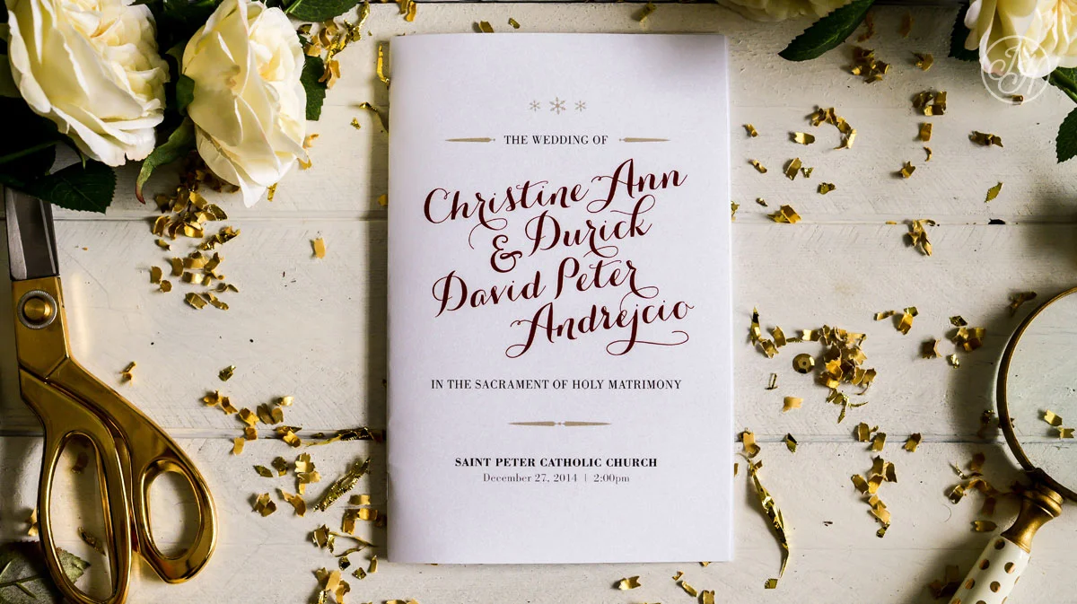 For the day-of stationery we created a lovely 8-page program, guest welcome cards and gold backed table numbers with the same fabulous brooch! It was such a pleasure to work with this lovely couple and from the photos I have seen this day was a Christmas lovers dream!