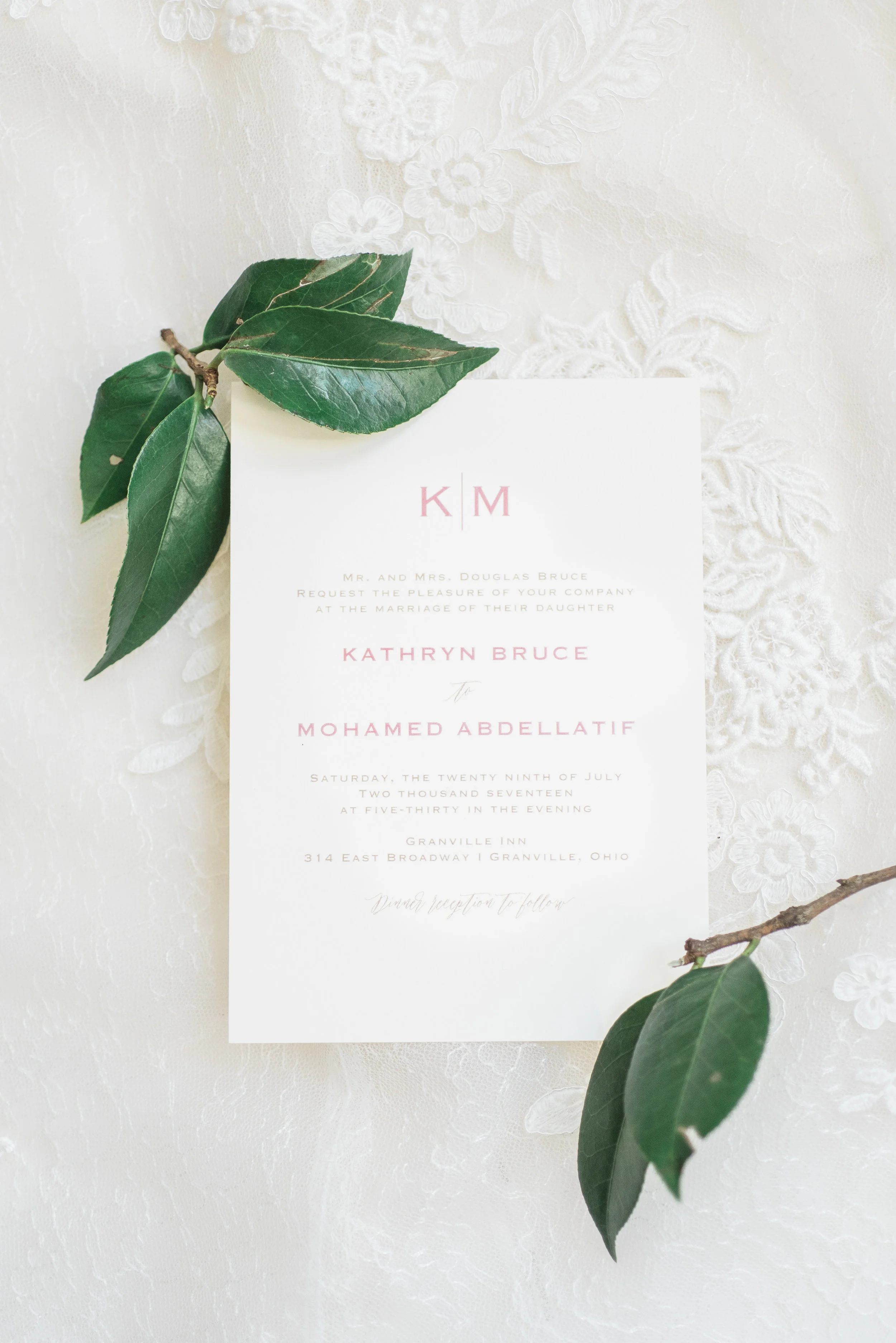 Katie and Mo envisioned a blush infused garden wedding and they definitely did not disappoint. This sweet couple tied the knot amongst family and friends at the historic Granville Inn, located near Columbus, Ohio and I am so thankful that Anna Markley Photography was there to capture all of the stationery goodness.