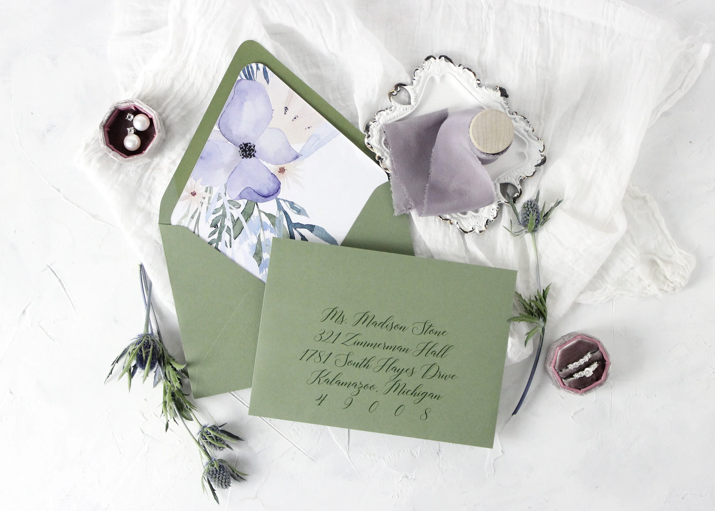 The painterly floral liners are one of my favorite upgrades! When guests open the invitation suite they’re instantly wowed by the couple’s artistic attention to detail. We’re predicting envelope liners to be a big trend for brides in 2020.