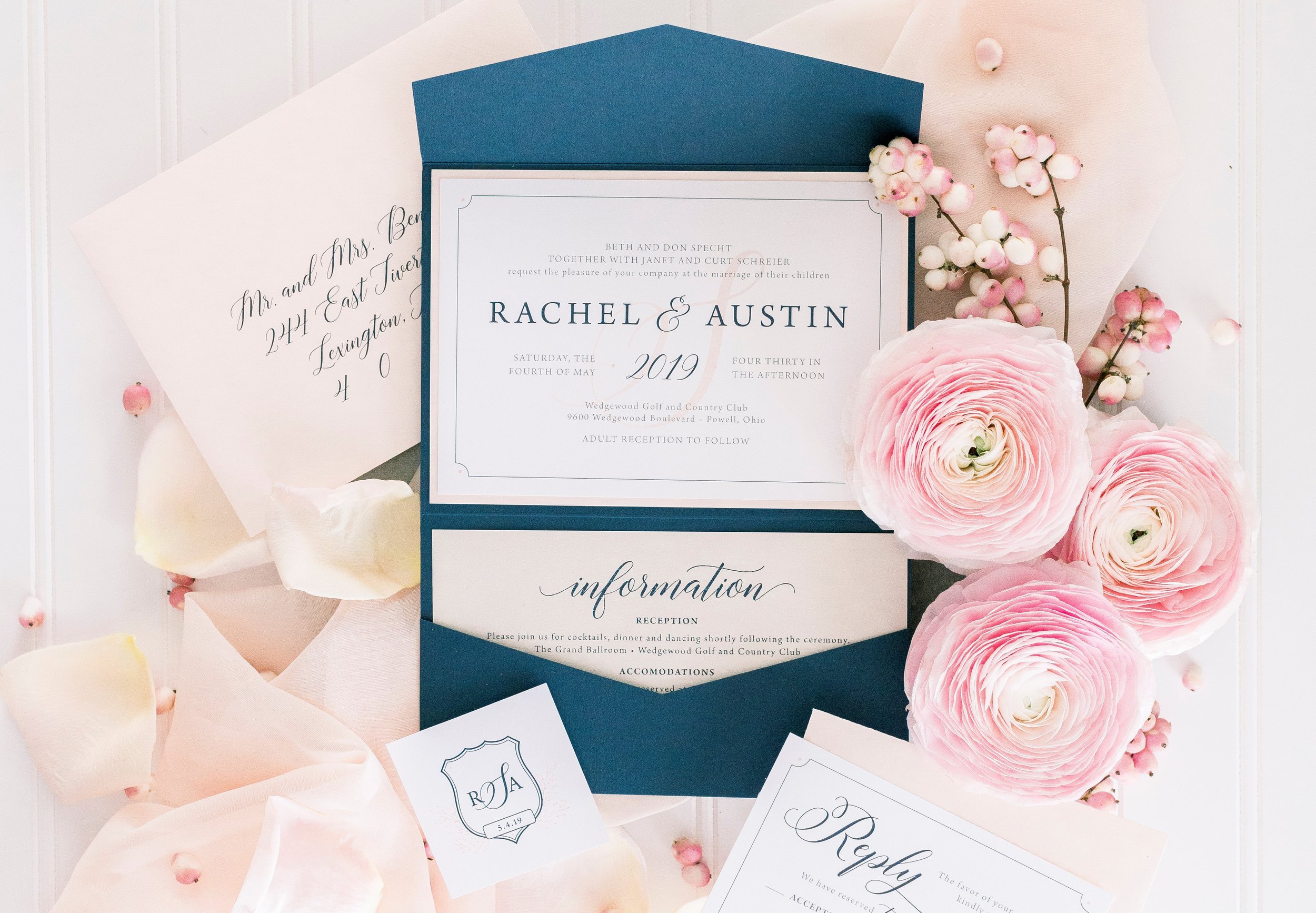 Invitation - This is the most important piece of your invitation suite. It includes all of the important details — the couple’s names, location, date, time and ceremony location. For more details on how to word this important item please visit the invitation wording page.